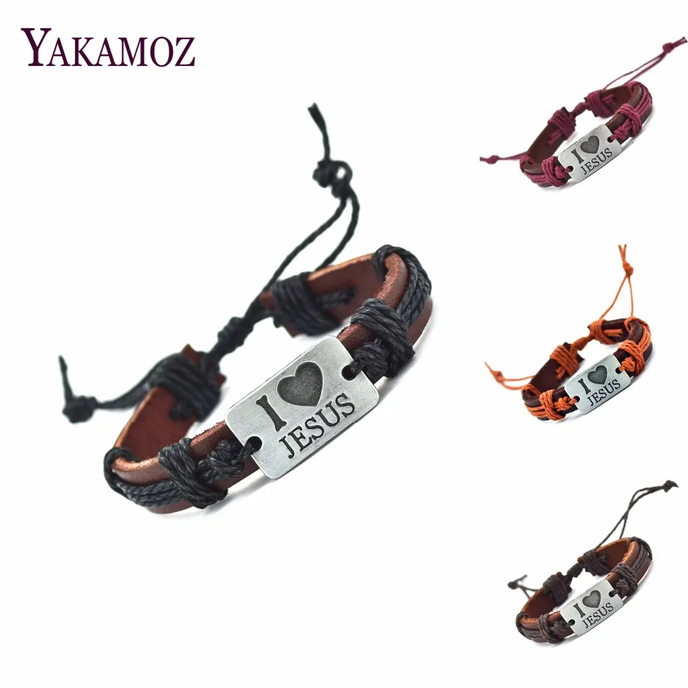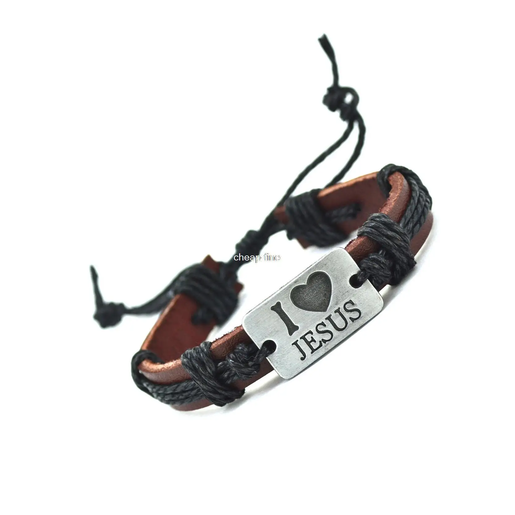 Buy 2017 I Love Jesus Genuine Leather Charm Bracelet Cuff Braided Wrap Bracelet & Bangles Fashion For W