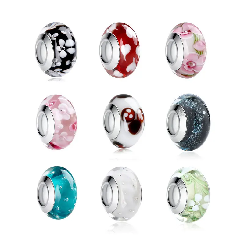 Best BISAER Beads Sterling Silver 925 Jewelry Lampwork Glass Beads for Jewelry Making Blossom 11 Colors