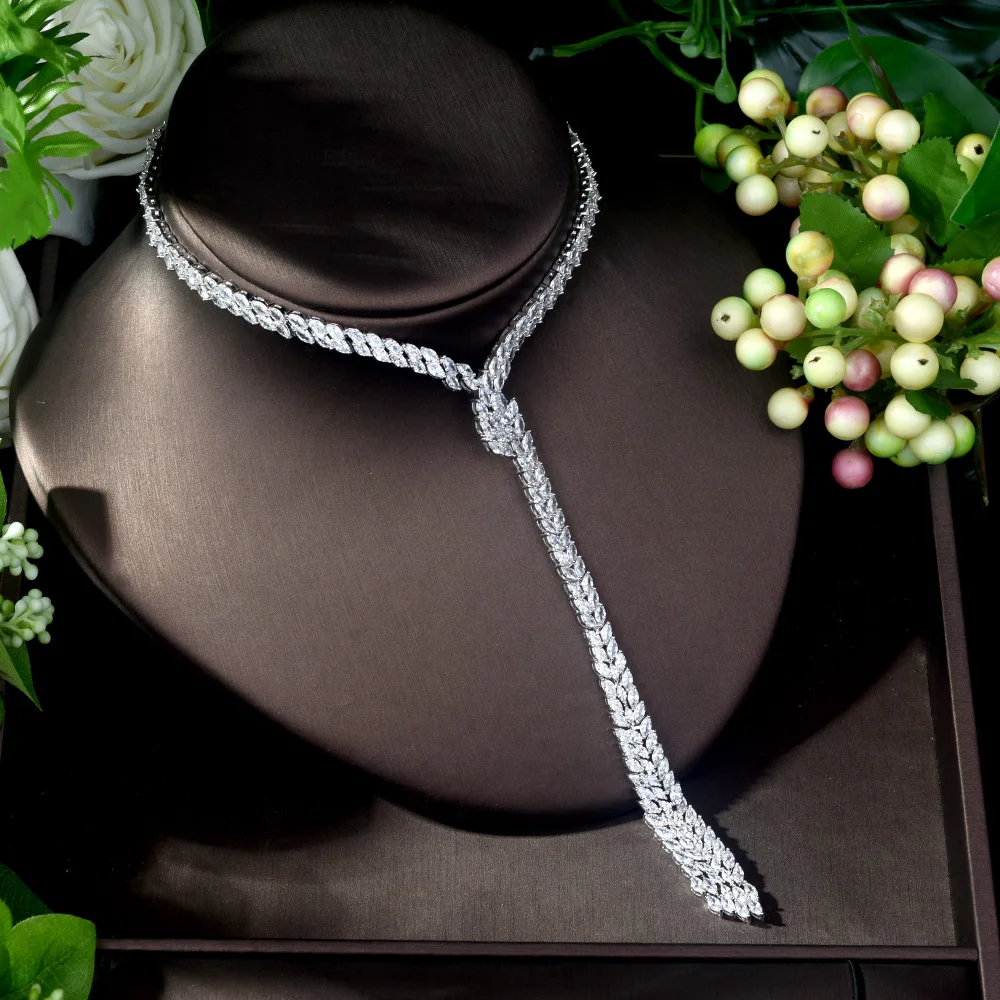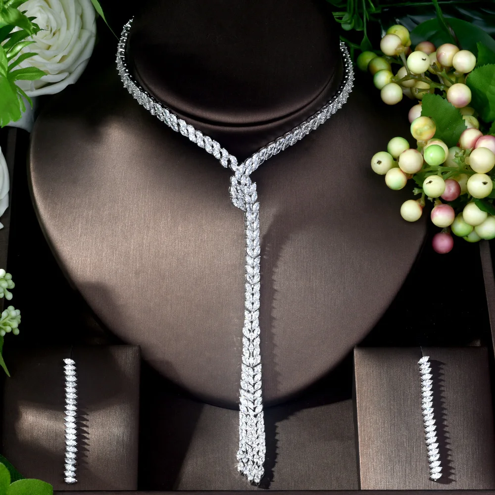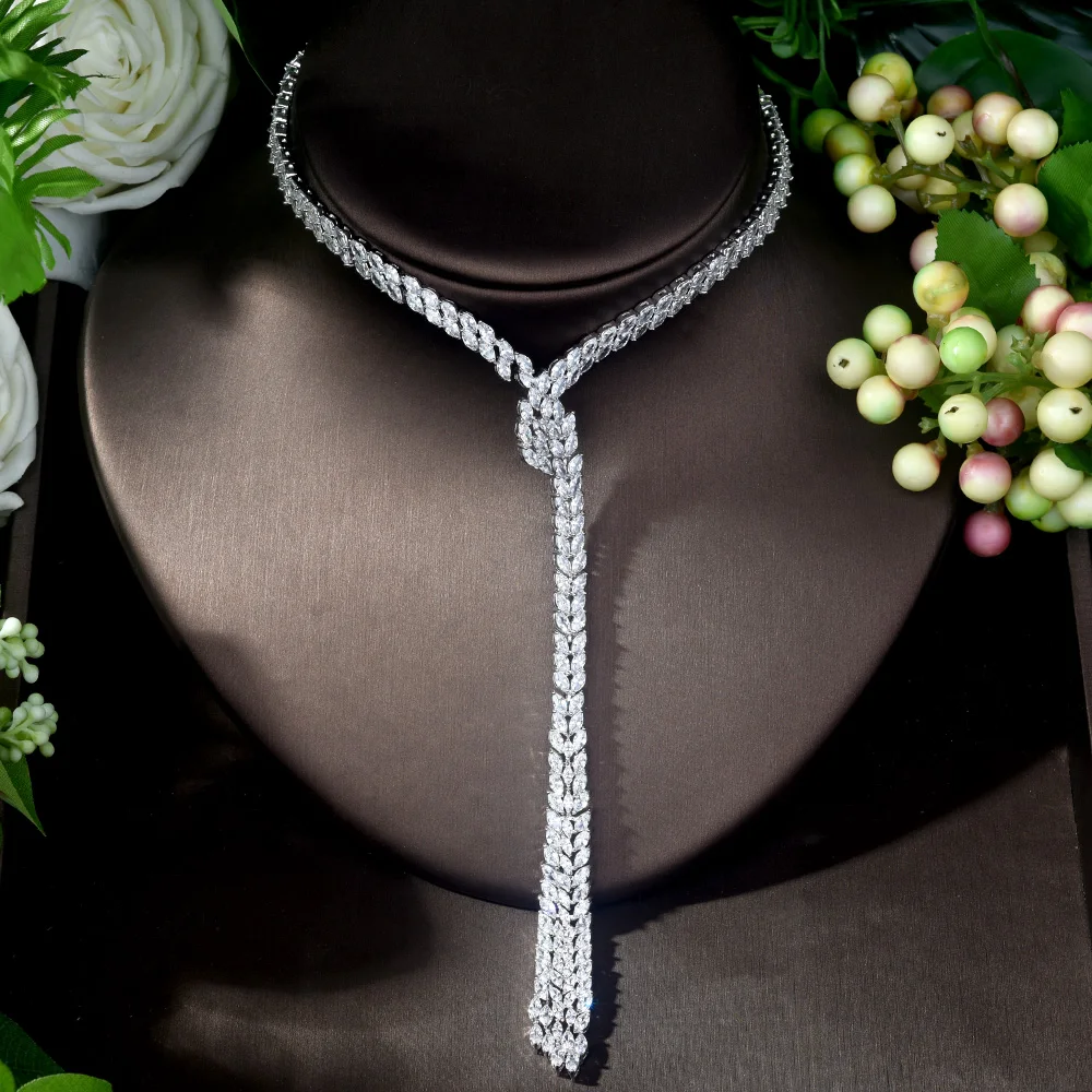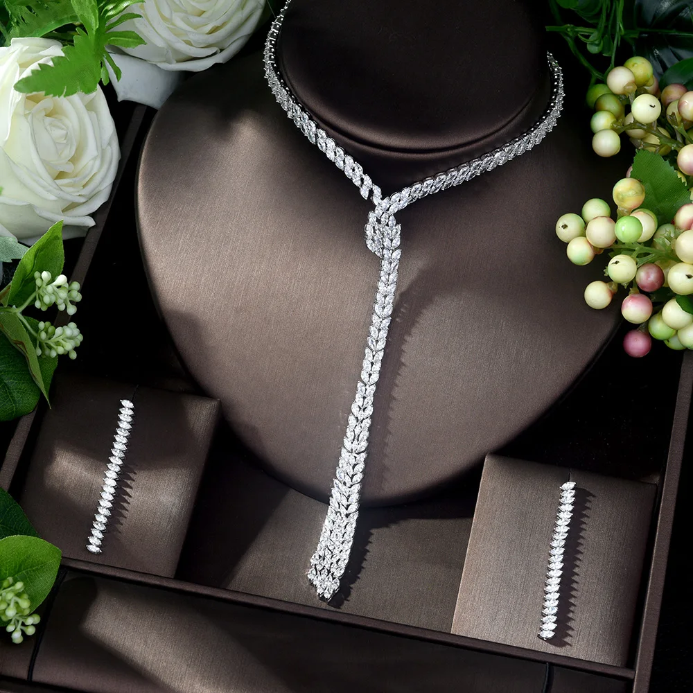 Promo HIBRIDE Fashion Long Necklace Luxury Jewelry Set Cubic Zirconia Wedding Bridal Dubai Jewelry Sets f