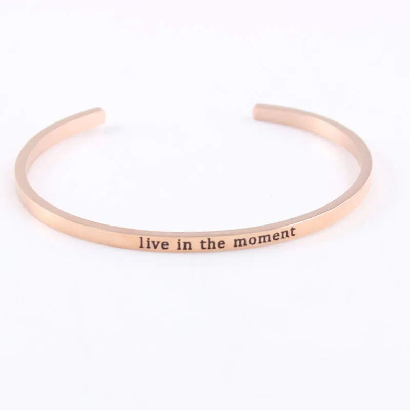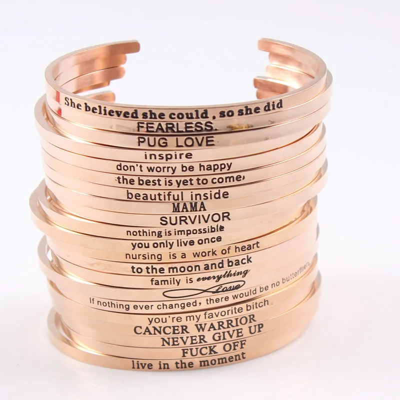 Promo Hot Sell Rose Gold Color Mantra Bracelet Inspirational Stainless Steel Engraved Bangle For Women Lu