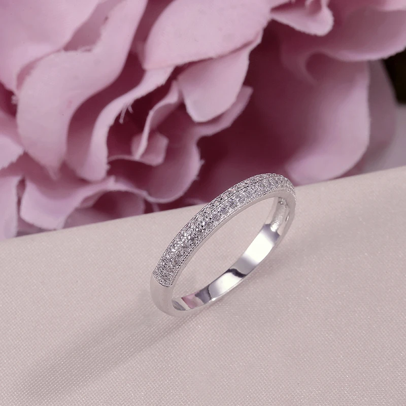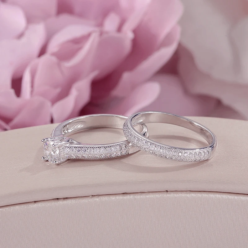 Buy 100% Real 925 Silver Rings For Women Simple Double Stackable Fine Jewelry Bridal Sets Ring Wedding