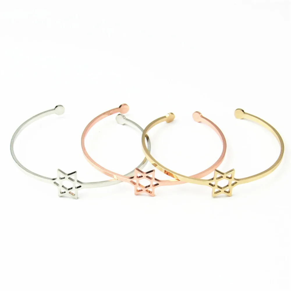 Buy Doreen Box Stainless Steel Open Cuff Bangles Bracelets Silver/Rose Gold Star Of David Hexagram 16.5