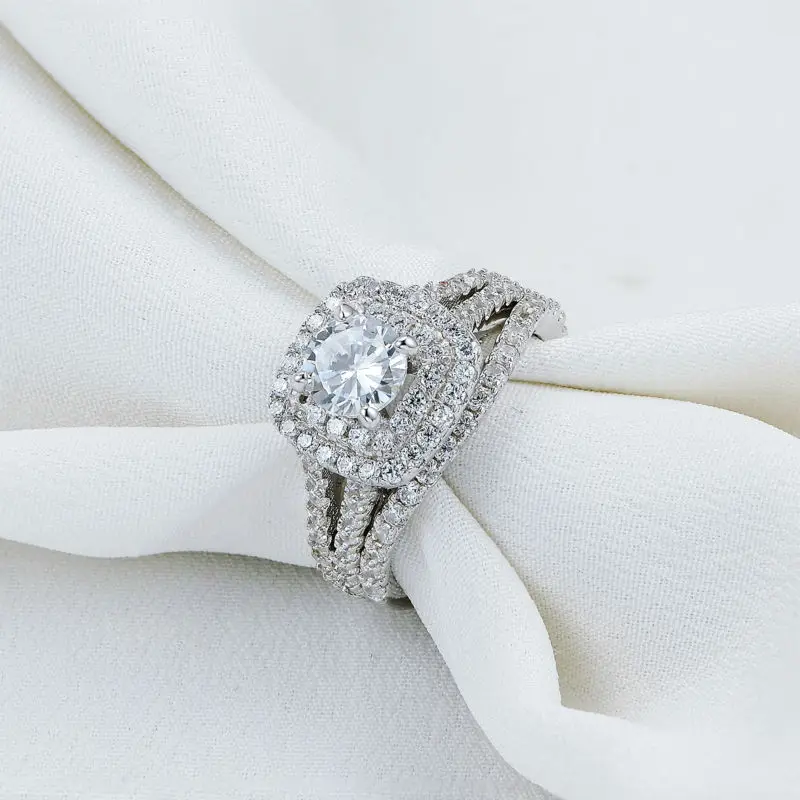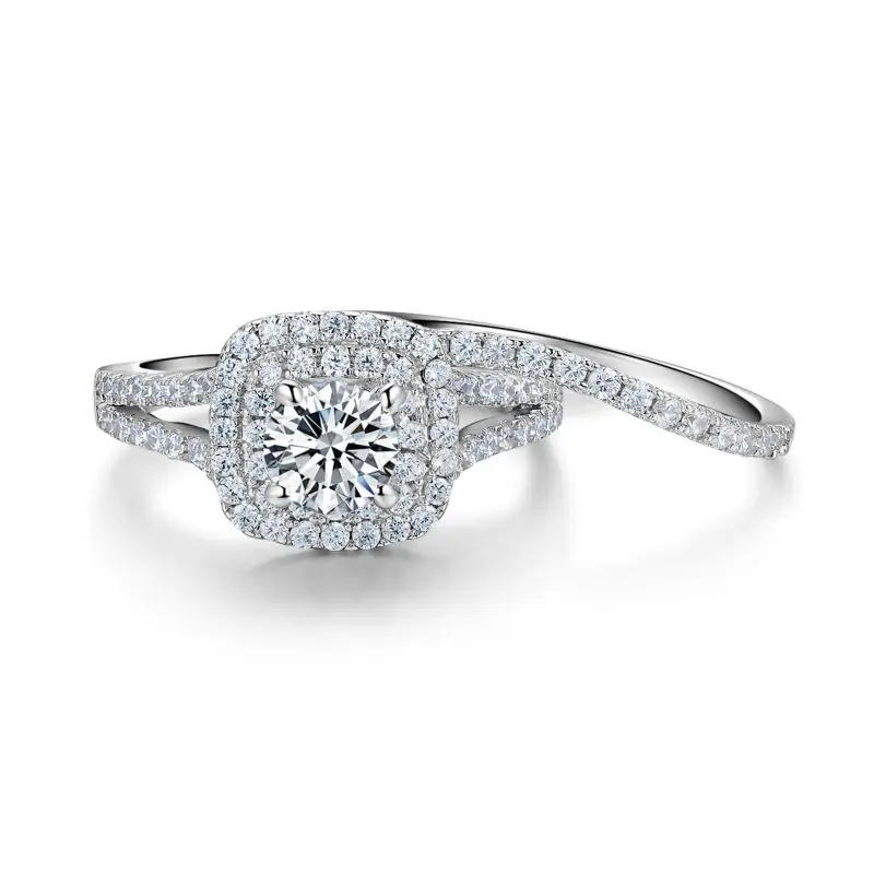 Buy Newshe 2 Pcs Solid 925 Sterling Silver Women's Wedding Ring Sets Victorian Style Blue Side Stones C