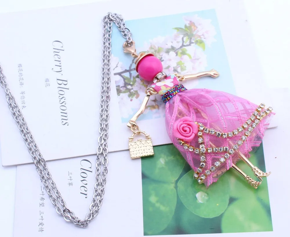 Best Statement Flower Dress Doll Necklace Handmade French Doll Pendant 2018 New Alloy Girl Women Necklac