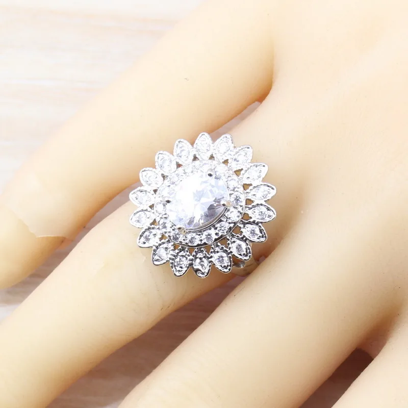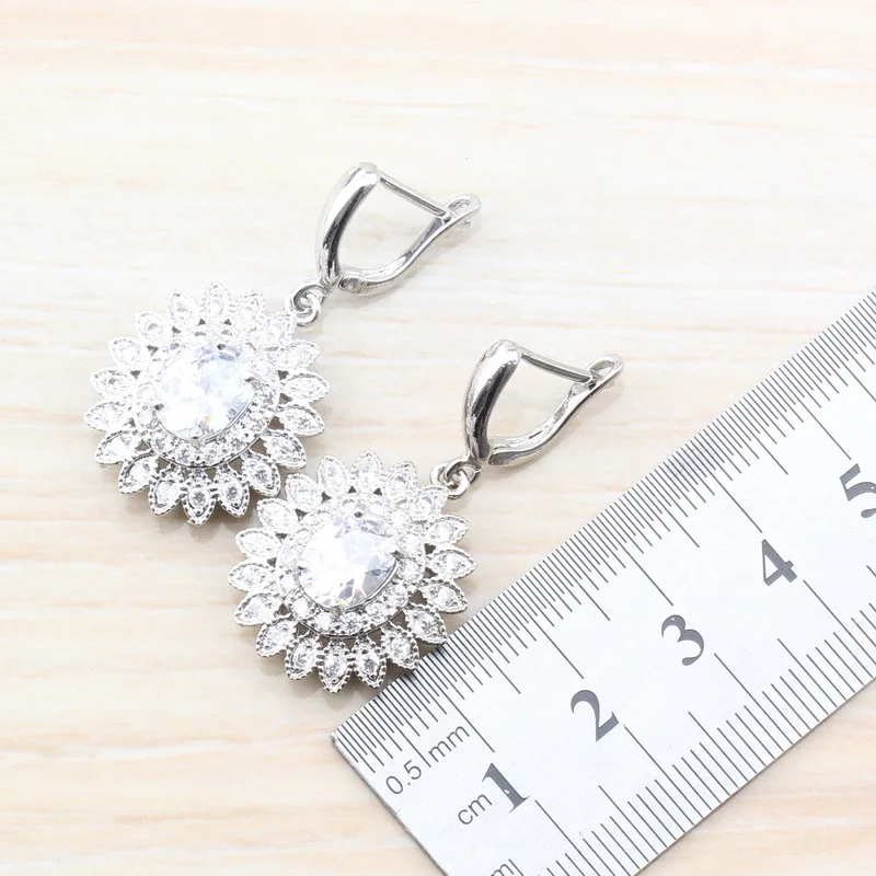 New AAA+ Quality White Austria Crystal 925 Sterling Silver Dubai Wedding Costume Jewelry Sets Earrings/