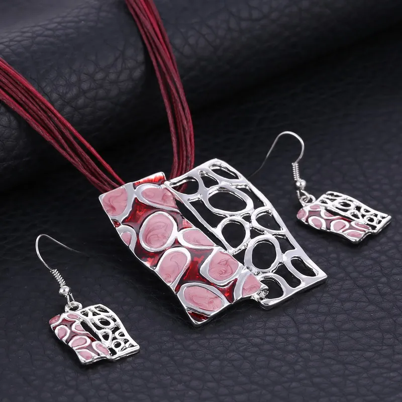 New Fashion Silver Jewelry Set 2019 Leather Chain Enamel Gem Necklace Set for Party Bridal Jewelry Sets