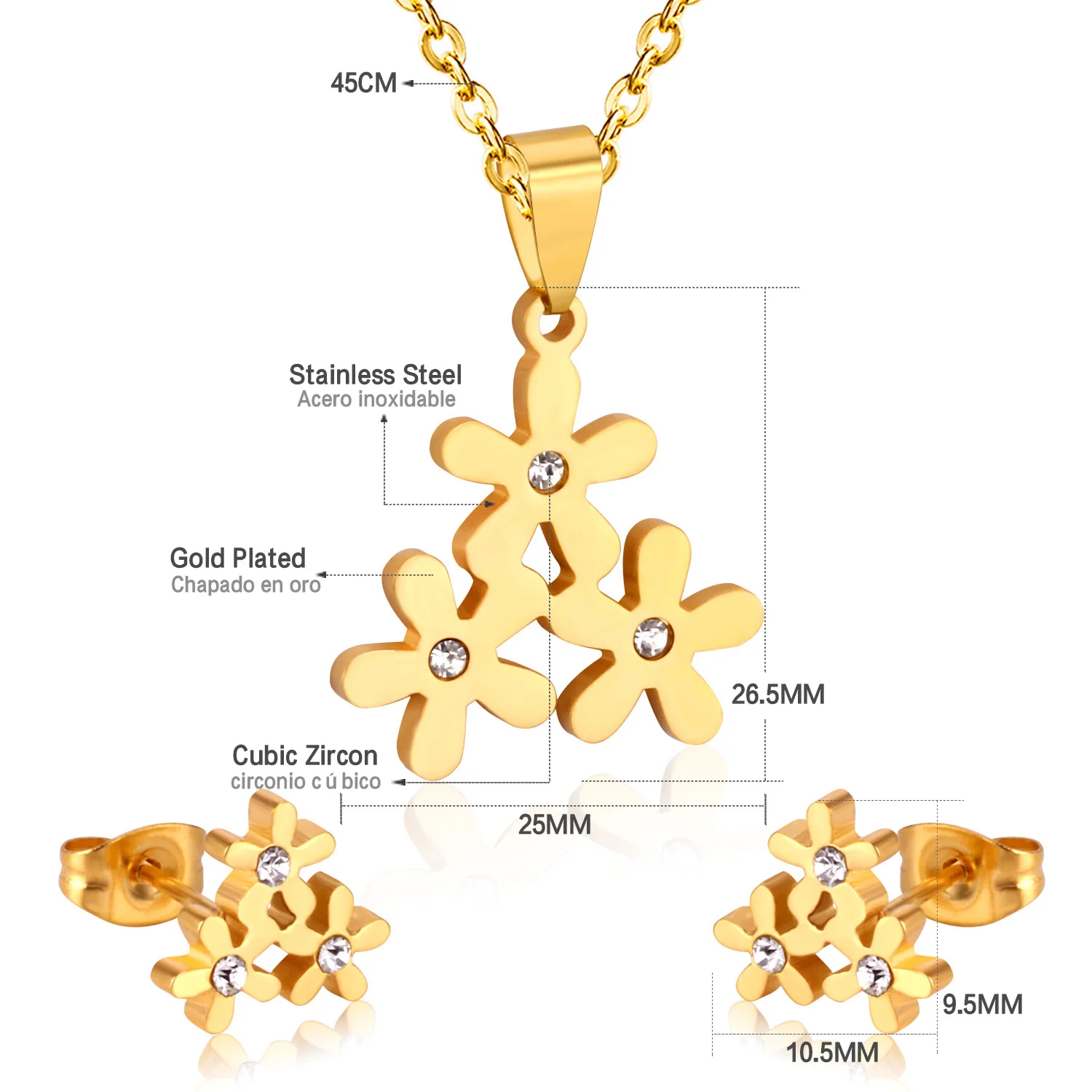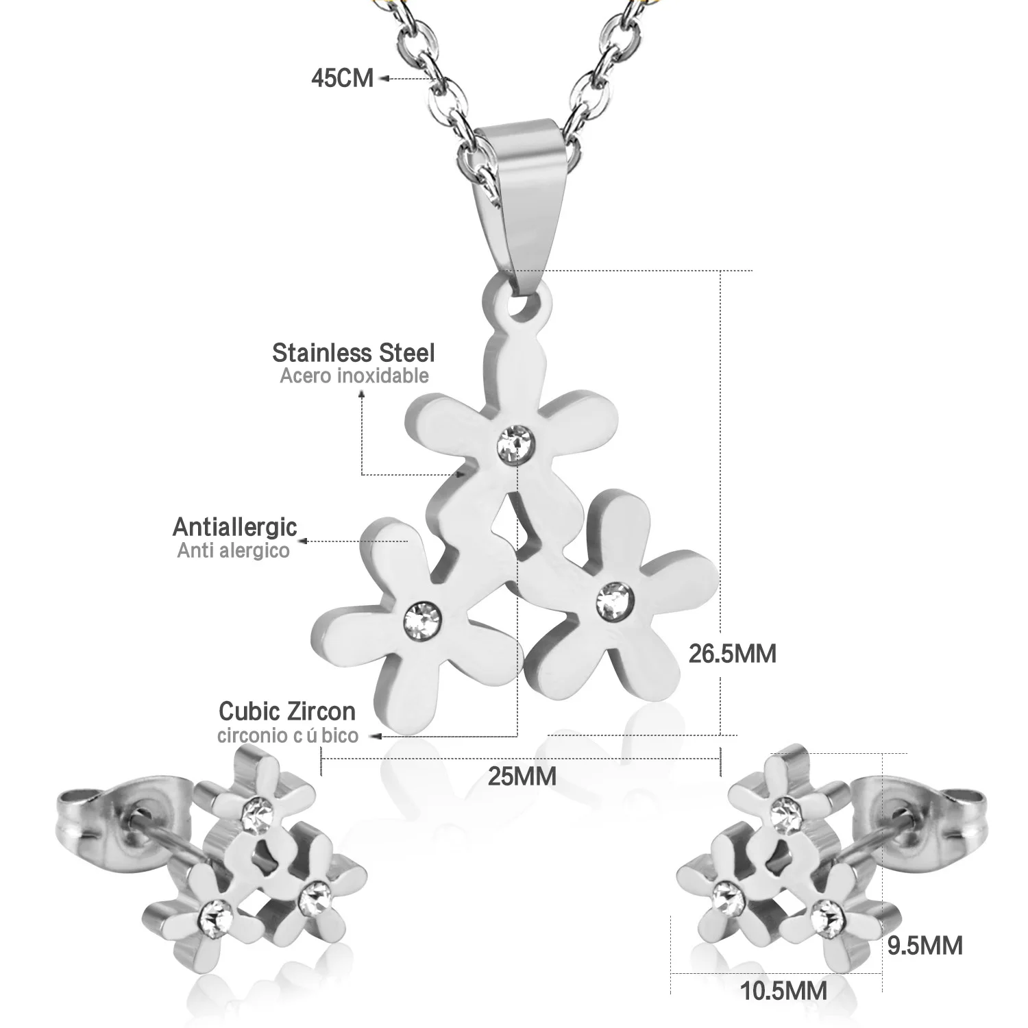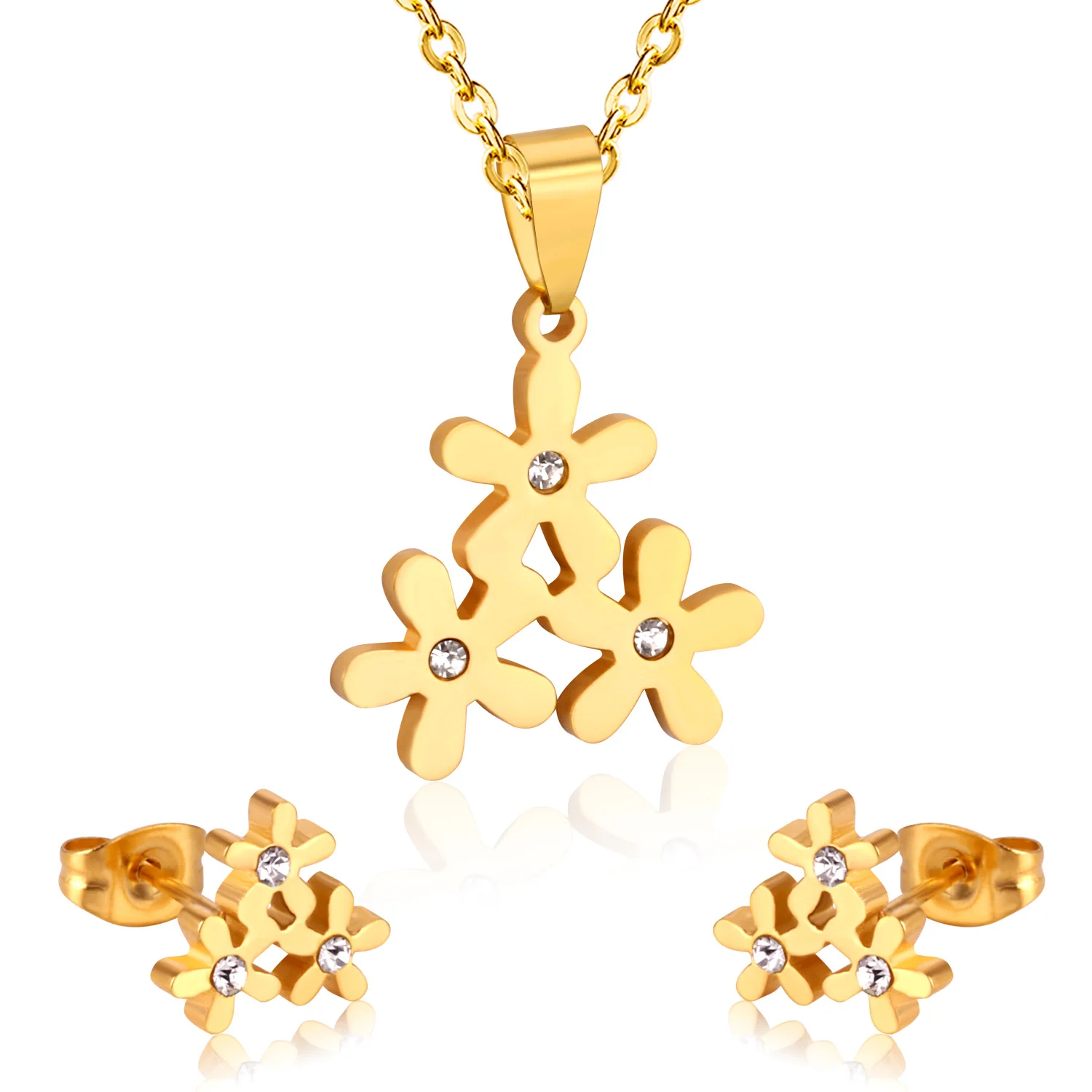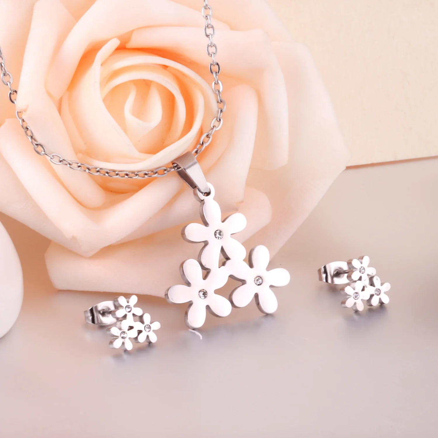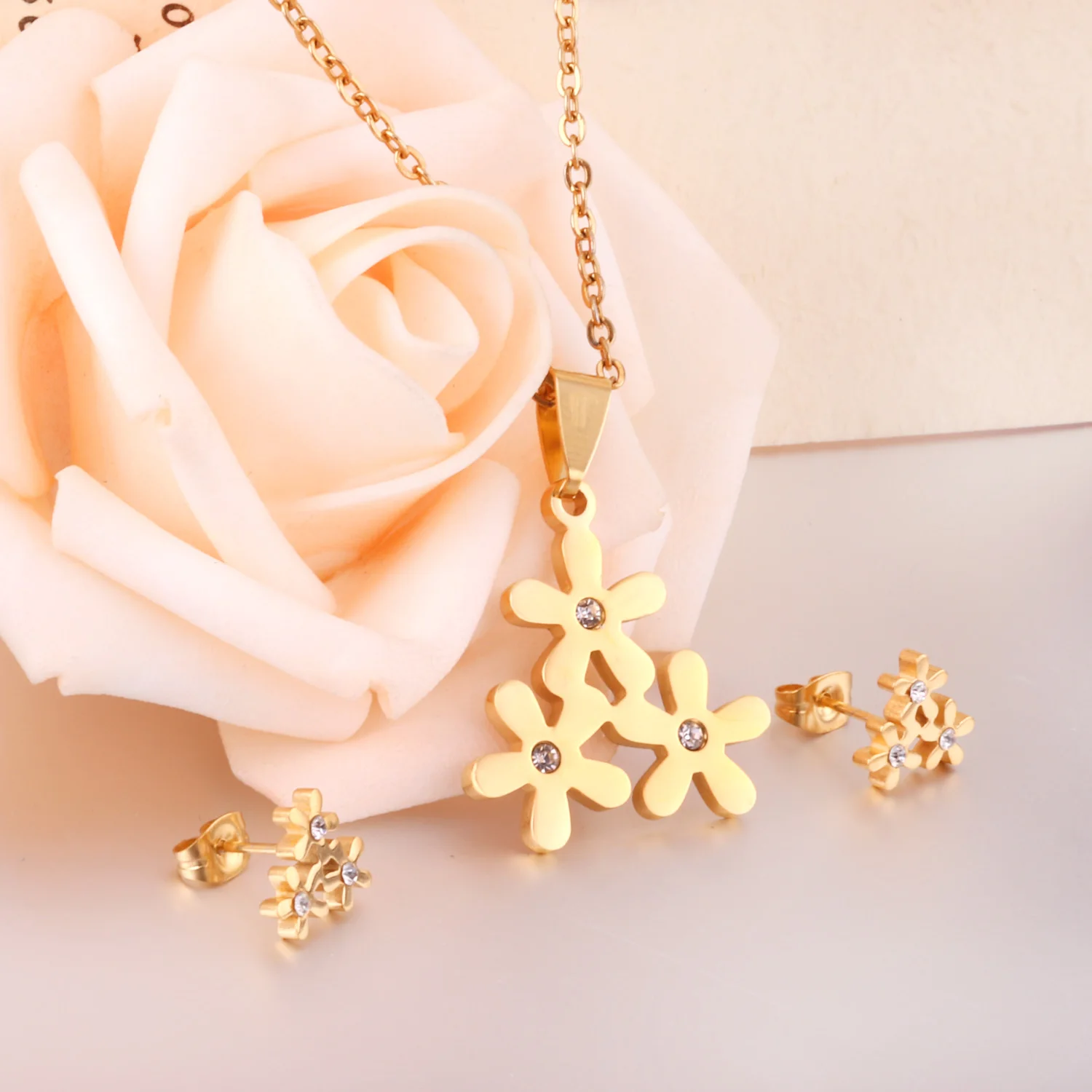 New LUXUKISSKIDS Stainless Steel Jewelry Sets For Women Bridal Dubai Jewelry Flower With Crystal Earrin