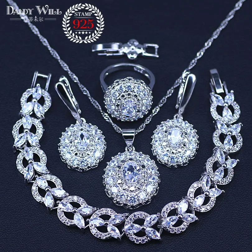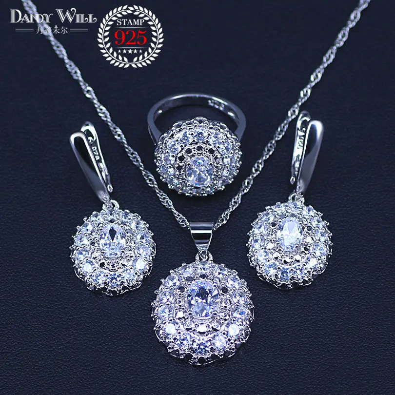 New New Arrival 925 Sterling Silver Women Accessories Earrings Jewelry Set With White CZ Necklace Earri