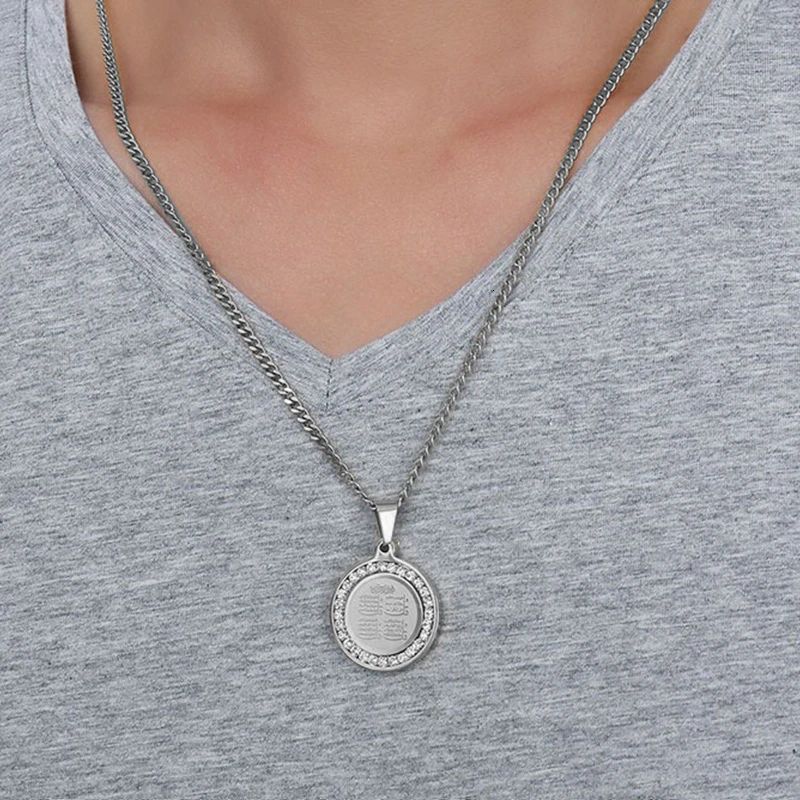 Promo 4 Qul Necklace Muslim Islamic Hajj Umrah Monogram Silver CZ Stone Pendant Men Jewelry