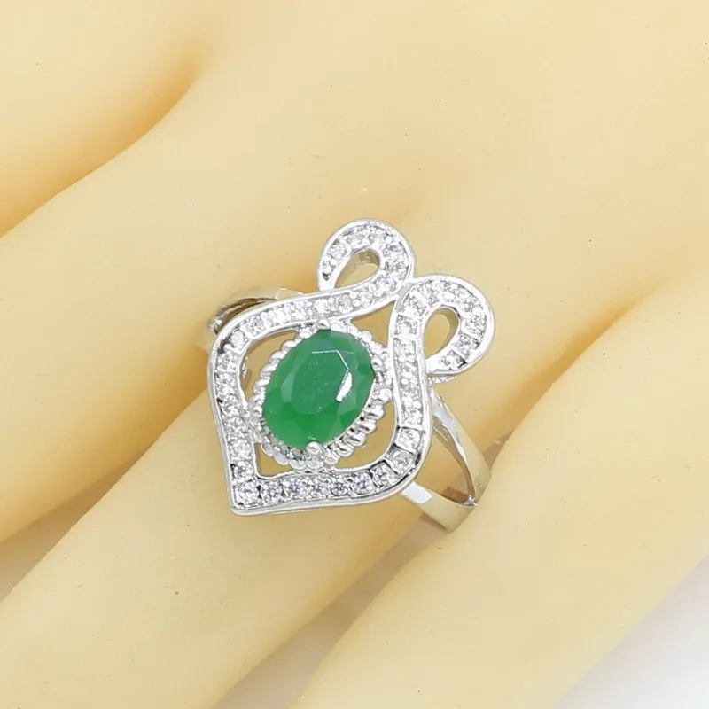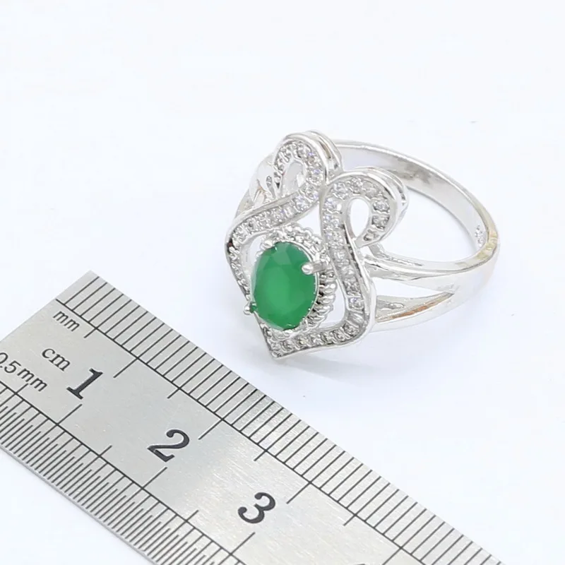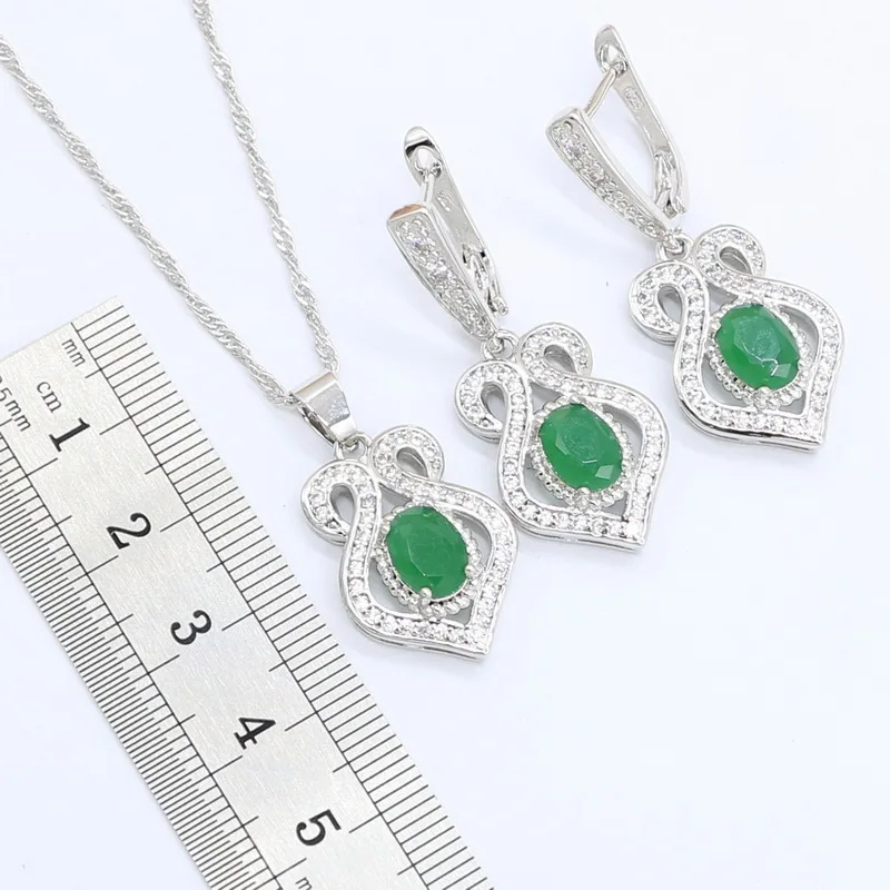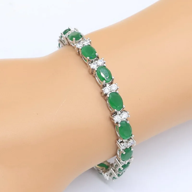 Best 925 Silver Jewelry Sets for Women Bracelet Green Semi-precious Earrings Rings Necklace Pendant Gift