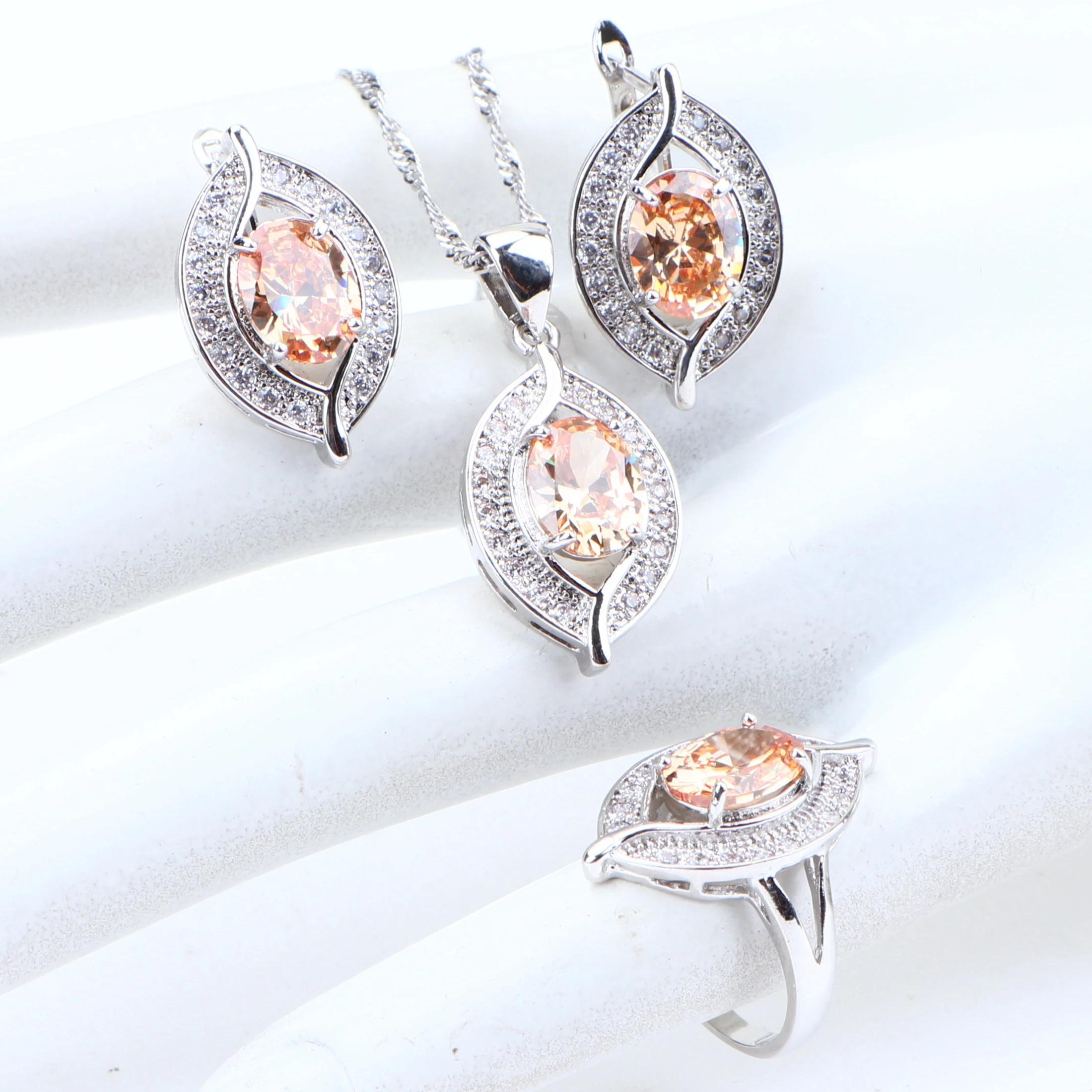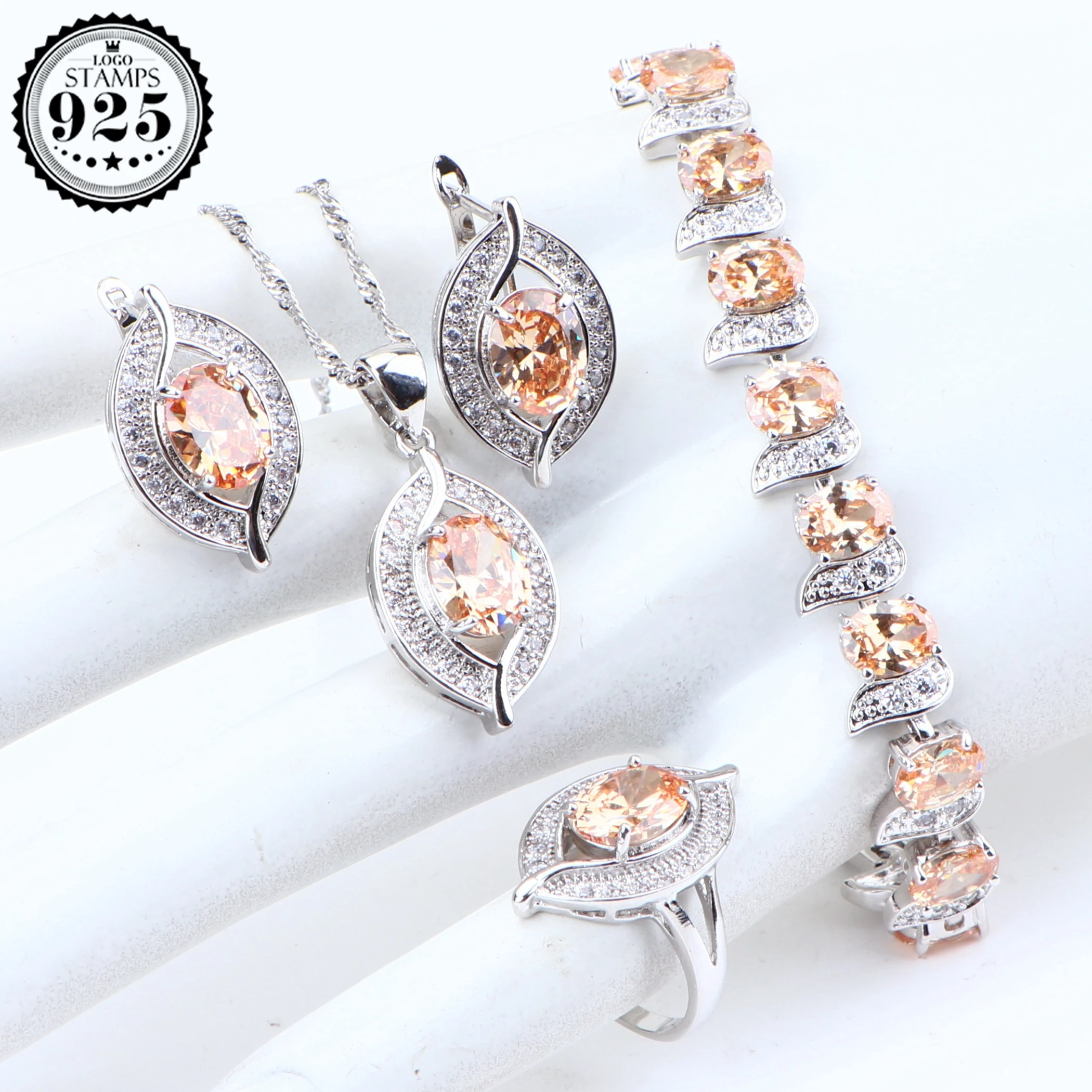 Best Bridal Jewelry Sets Champagne Zirconia Silver 925 Costume Wedding Ring Necklace Jewelry Bracelet Ea