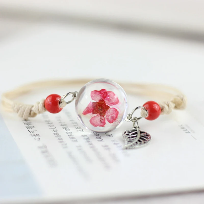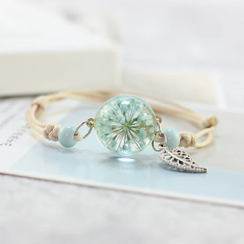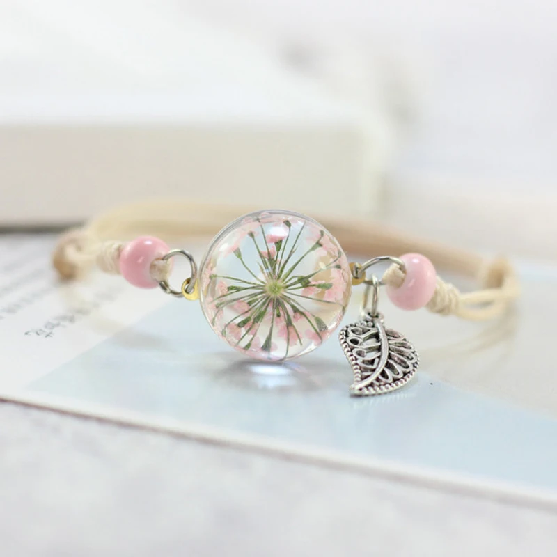 New Glass Ball Dried Dandelion Bracelets Ceramic Hand-made Dried Flower Charm Bracelets Girls Gifts Nat