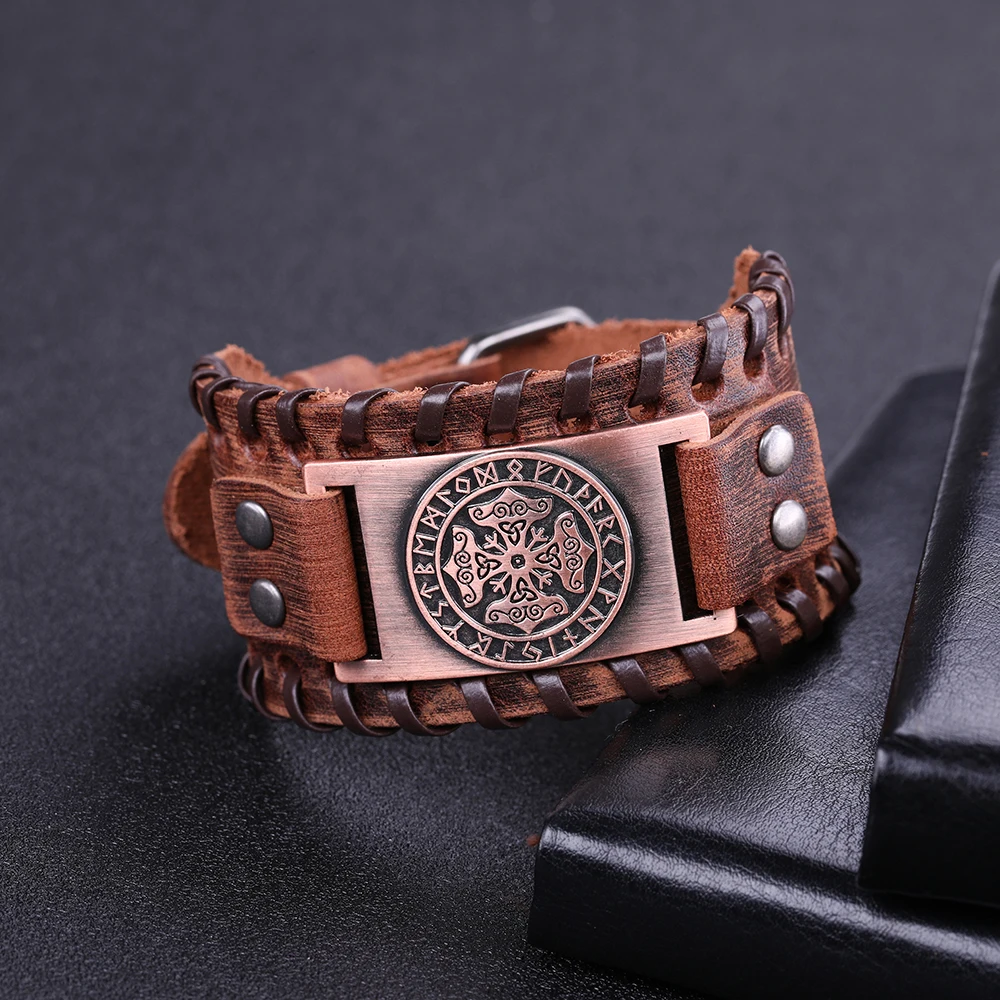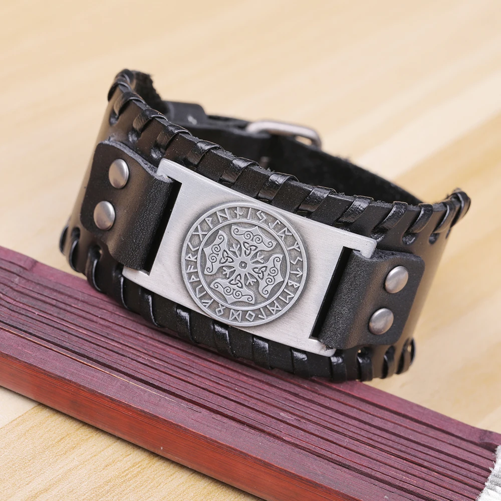 Promo Skyrim Mjolnir Thor Hammer Cross Wide Leather Bracelets Norse 24 Runes Irish Knot Viking Slavic Sym