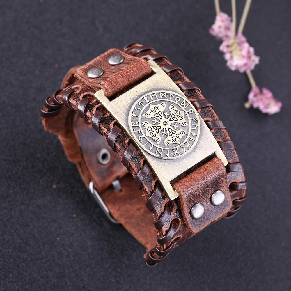 Best Skyrim Mjolnir Thor Hammer Cross Wide Leather Bracelets Norse 24 Runes Irish Knot Viking Slavic Sym
